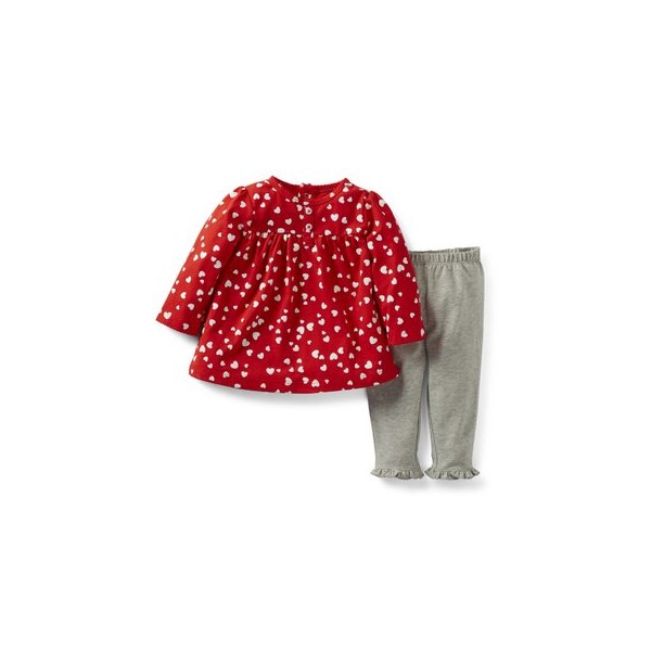 As estampas de coração sobre este conjunto de 2 peças torná-o divertido de usar.Túnica de manga longa e leggingsstretch são uma maneira perfeita de dizer eu te amo.
