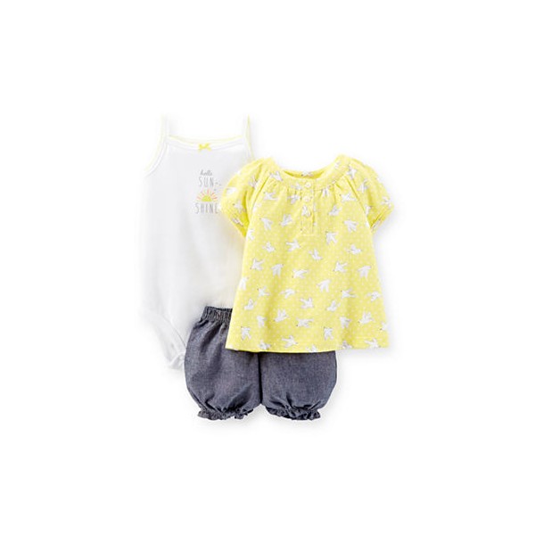 Conjunto Carter´s 3 Pçs Amarelo e Branco - 12 meses - Menina